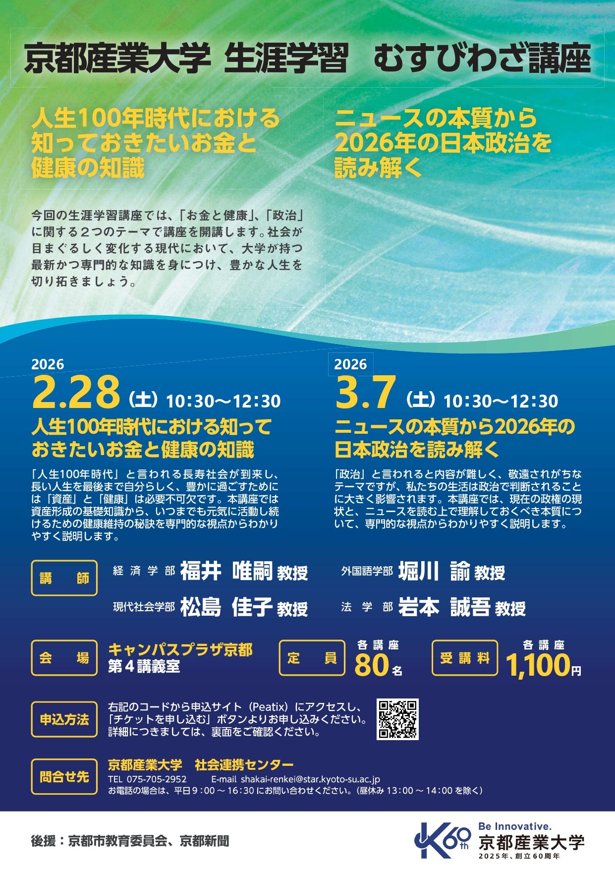 - これからの暮らしに役立つ知識を学ぶ! 京都産業大学『生涯学習むすびわざ講座』を開講