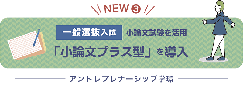 NEW❸ アントレプレナーシップ学環 小論文試験を活用!「小論文プラス型」を導入
