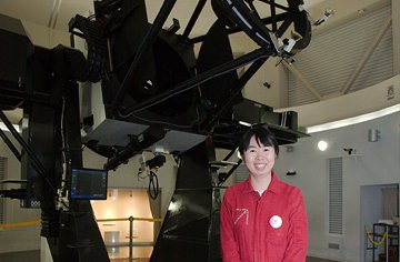 私は、仙台市天文台で来館者の方々が参加する天体観望会の望遠鏡業務をメインに、プラネタリウムの投映業務、展示室での案内業務などを行っています。東北地方最大の口径をもつ「ひとみ望遠鏡」は、京都産業大学にある「荒木望遠鏡」と同じ口径のため、在学中に身につけることができたスキルが現在でも大いに役立っています。