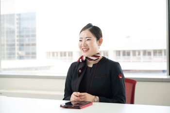 高校生の頃から客室乗務員になることが夢でした。その夢がかない、充実した日々を送っています。入社して5年目を迎えた今、客室乗務員として国内線、国際線に乗務しています。出発の際に「本日はご搭乗ありがとうございます」というアナウンスに合わせて私たち客室乗務員は皆、お客さまに向かってお辞儀をするのですが、そのときに満席の客席を見ると、この仕事を選んでよかったとしみじみと感じ入っています。フライトごとに乗務員のメンバーは異なりますが、互いに助け合い、お客さまを快適で安全に目的地までお届けするために一丸となって取り組んでいます。どんなに回数を重ねても、無事に到着したときにはほっとしますし、また、次のフライトに向けて頑張ろうという気持ちが湧いてきます。今年の2月からビジネスクラスも担当することになりました。覚えなければならないことが増えるので大変ではありますが、自分自身の成長を感じています。今後の目標は、国際線エコノミークラスの責任者資格を取ることと、もっとスムーズに英語でお客さまに対応できるよう英語力を磨くことです。頼られる客室乗務員を目指して、頑張ります。