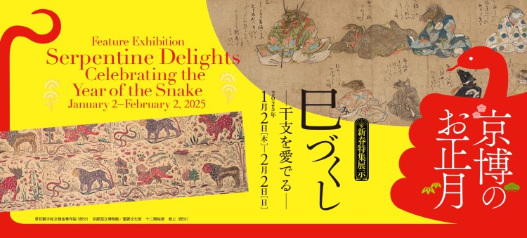 京都国立博物館では、2025年の干支「巳」をテーマにした新春特集展⽰「 ⺒づくし—⼲⽀を愛でる—」を開催。古くから水や豊かな実りの神として崇められてきた蛇にまつわる美術品をたっぷり鑑賞できます。