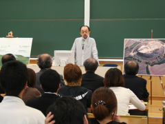 「大学の歴史と京都産業大学」では、本学生に大学で学ぶ意義を認識し、学生生活をどのような目的を持って送るべきかを考え、その後の人生の生き方の指針を獲得してもらうことを目的にリレー講義で授業が行われる。