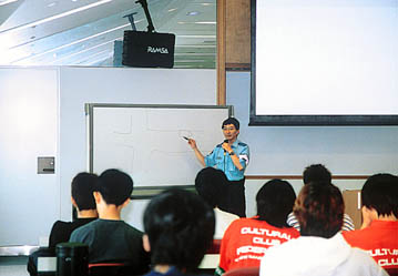 学生生活課は 『交通安全セミナー』 を7月10日、 神山ホール・第一セミナー室で開催し、 学生約170人が参加した。 最初に西田義則学生生活課長が 「事故の発生率が夏休みに多く、 過去に死亡事故も発生している。 周りの人を悲しませることのないように」 と挨拶。 講師は上鴨警察署交通課長の藤岡眞司 (ふじおか しんじ) さんと同署交通指導主任の橘 久美 (たちばな くみ) さん。 まず橘さんが、 血液型からみた加害者のタイプを分析、 その相関関係に学生は興味深く聴講した。 昨年、 京都で交通事故の死亡者が164人、 うち11人が大学生、 そしてバイクでの事故が多いことから 「安全なバイクの乗り方」 のビデオを視聴した。 続いて藤岡さんが昨年、 上鴨署管轄内で起こった3件のバイクの死亡事故の状況を図を描いて解説した。 この内2件の2人の死亡者は京産大生だった。 次に傷害保険の種類や過去に事故の被害者に支払われた保険金額、 また今年6月に発足した交通事故規制について特に飲酒運転の罰則の強化など詳しく説明した。 最後に本学駐輪場で安全なヘルメットの着用を指導している小関黎子 (おぜき れいこ・上賀茂安全協会柊野支部長) さんが 「20数年前、 当時小学生だった私の子供の友達が京産大生運転の乗用車にひかれ死亡しました。 その時のお母さんの悲しむ姿を目の当たりにして、 安全で安心な街を実現したいという願いから交通安全運動を続けています。 交通事故を起こして大事な命を無駄にすることのないように」 と話した。