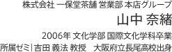 日本のお茶の魅力を、海外の方にも身近に楽しんでほしい。日々そんなことを考えながら、現在は京都本店で主に接客販売やお茶の淹れ方のレクチャーなどをしています。最近では欧米の国々に赴き、現地のワークショップでお茶の講師を務めることもあります。世界の多様な文化を比較して学べることが京都産業大学の文化学部を選んだ理由ですが、振り返れば大学での学びや留学の経験がすべて今の仕事につながっていると身にしみて実感します。大きな転機となったのは、2年生の時のニュージーランド留学。1ヶ月のホームステイを通じて自分が本当に伝えたいことを言葉にできないもどかしさを痛感しました。その悔しさをバネに4年生の時には1年間日本語を使わない覚悟でイギリスへ留学しました。語学力を磨くだけでなく、そこでの生活には大きな発見もありました。それは私の想像していた以上に海外の方が日本のことを知らないという現実。日本という国を外側から客観的に眺めることができ、それを機に日本の文化をもっと伝えたいと強く思うようになりました。お茶ひとつとっても、国によって水も違えば、使う道具も違います。文化や生活習慣の違いを深く理解し、一杯のお茶を通して日本の心を世界に向けて発信したいと思っています。