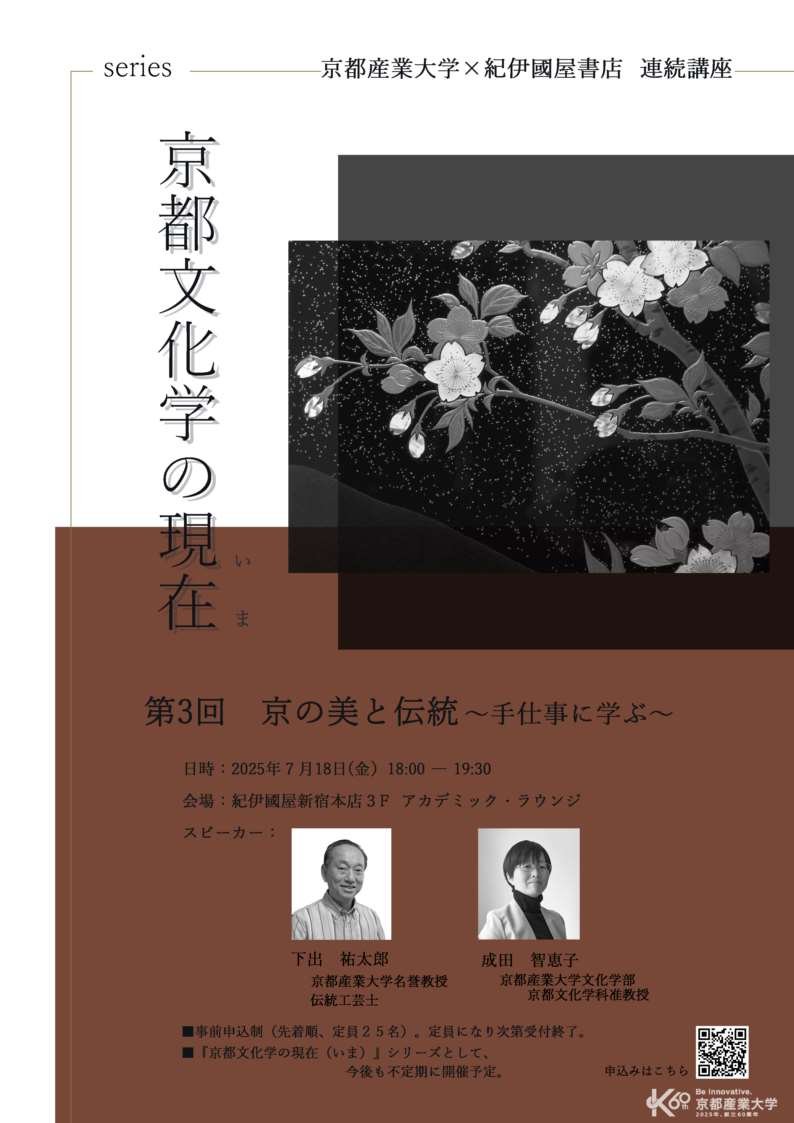 文化学部では、紀伊國屋書店新宿本店3Fアカデミック・ラウンジにて、「京都文化学の現在(いま)」をテーマとし、京都文化学科の教員が専門テーマに関する講座をシリーズで開催しています。