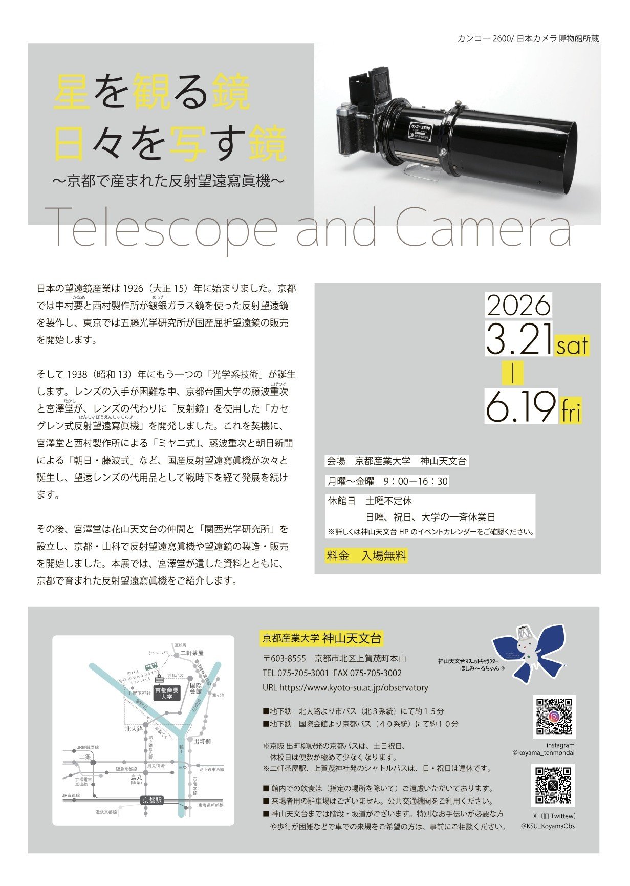 | 展覧会名 | 星を観る鏡 日々を写す鏡 ~京都で産まれた反射望遠寫眞機~ |