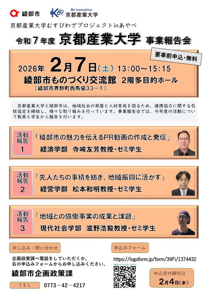 2025(令和7)年度「京都産業大学むすびわざプロジェクト in あやべ」事業報告会の開催について