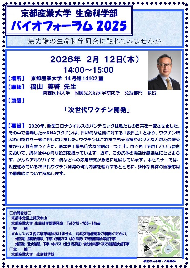 | 主催 | 京都産業大学 生命科学部 | |||||