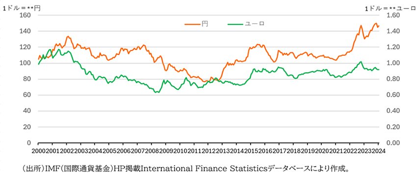 図表4.円とユーロの対米ドル為替相場の推移(月次)