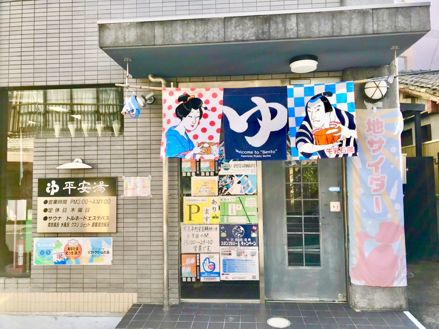 京都大学の近くの吉田東通にある平安湯。学生の利用客の割合が多い銭湯で、若い人でも入りやすいのが特徴です。