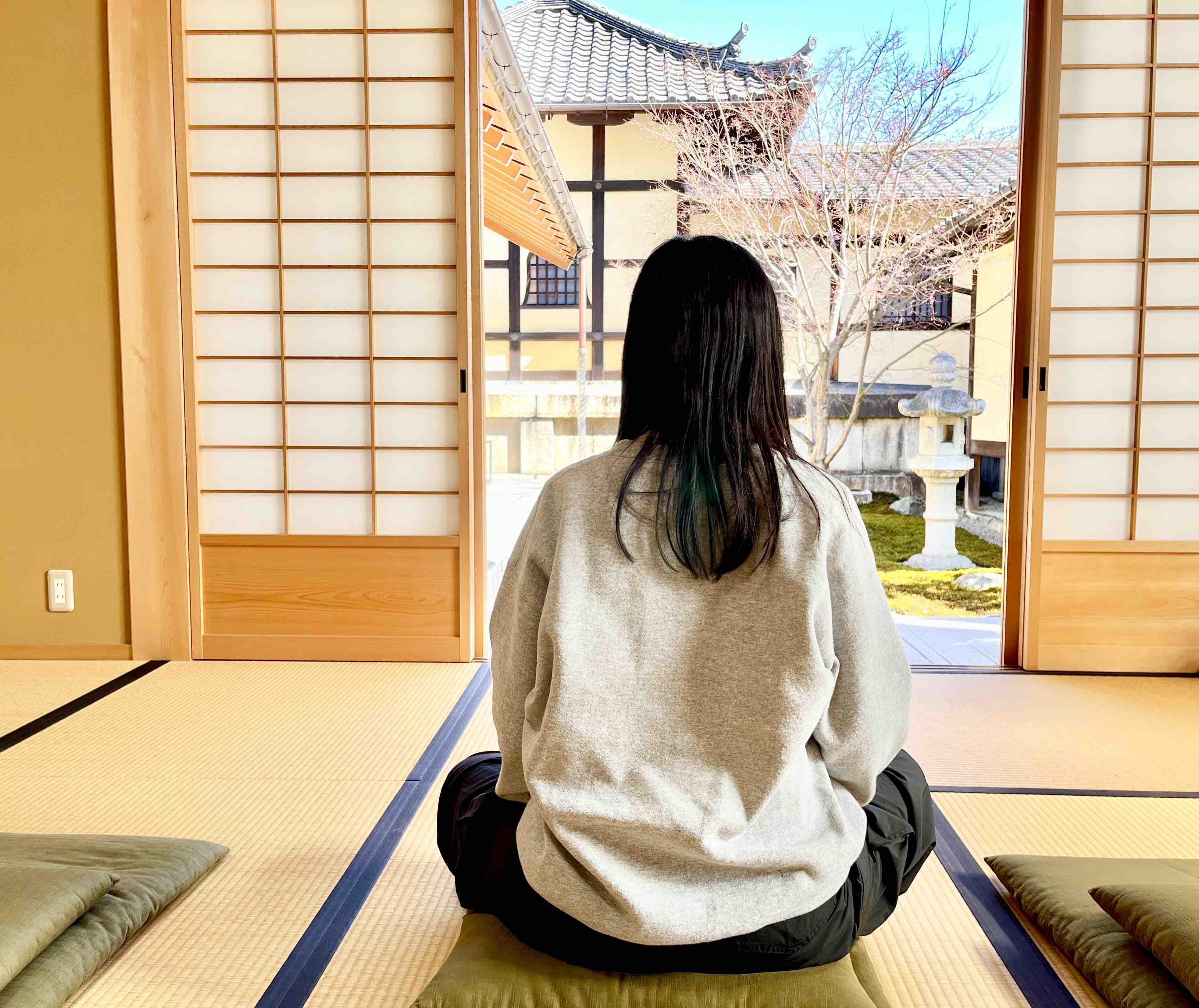 呼吸は、ゆっくりと鼻から。1から10まで頭の中で数え、10まで数えたらまた1に戻って続けます。これは数息観(すそくかん)といって、より坐禅に集中できる呼吸法です。