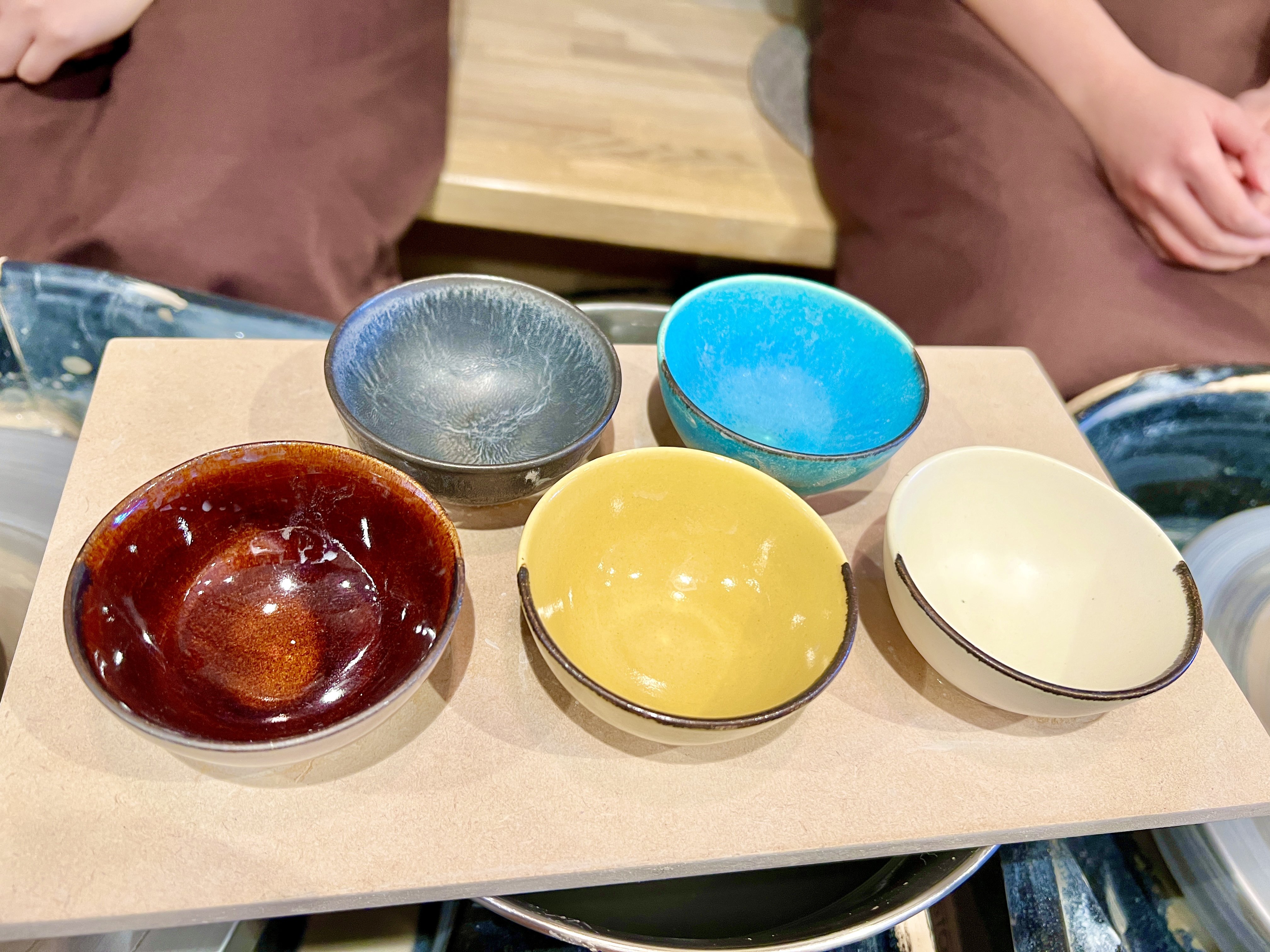 作りたい器の形を決めたら、いよいよ電動ろくろを使って成形していきます!基礎の形はスタッフさんが作ってくださるので安心です。手の形や力の入れ具合によって、形がどんどん変わっていきます!指先への力の入れ方など、丁寧にアドバイスを受けながら、自分好みの形に整えていきます。出来上がったら、今日の体験はここまで。約30分間の体験です。