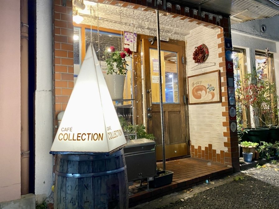 京都大学・農学部のバス停留所から徒歩1分、見えてきたのは三角形のライトと赤いバラ。マスターの山田さんが営む「カフェコレクション」です。バス停や大学が近いため、創業40年を越えるこのカフェには昔から多くの学生が通いつめているのだそうです。