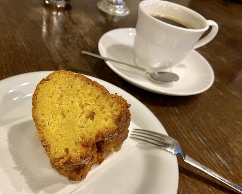 こちらでは、パンプキン味のパウンドケーキ(280円)をいただきました!パウンドケーキはお手頃価格なのにボリューム満点!昔このカフェに通っていた学生さんが考案した、思い出の詰まったメニューです。