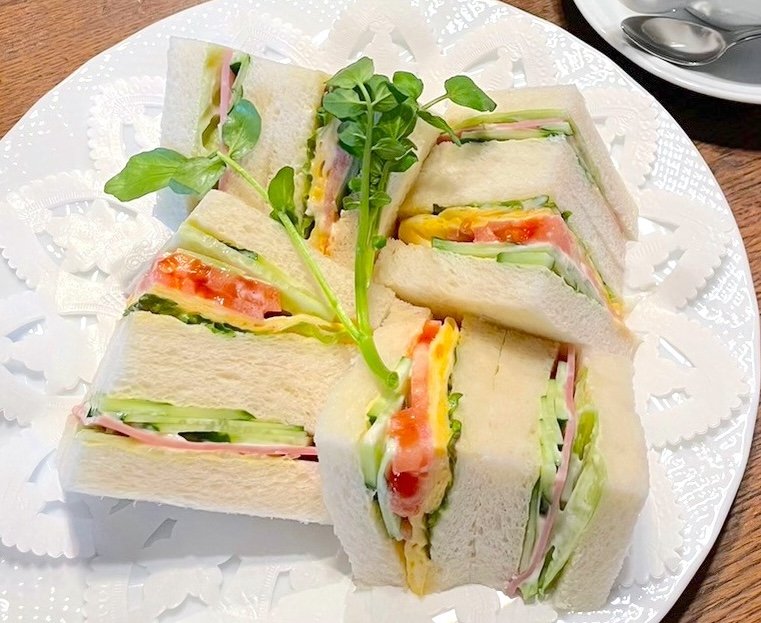 今回いただいたのは、「ミックスサンド」と「ハイティセット」「ウインナーコーヒー」です。