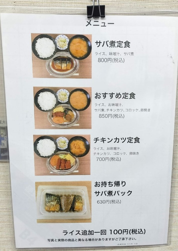 他にも「おすすめ定食(サバ煮、チキンカツ、コロッケ、卵焼き)」(850円)と「チキンカツ定食(チキンカツ、コロッケ、卵焼き)」(700円)があります。