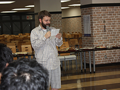 香港中文大学とアルゴマ大学の13名がひとりづつ日本語で滞在中の感想を述べ、カンバセーションパートナー代表と国際交流会館のI-Houseアシスタント代表からお別れの言葉が述べられた。