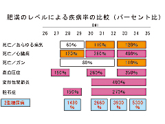 ■肥満のレベルによる疾病率の比較欧米人のデータ