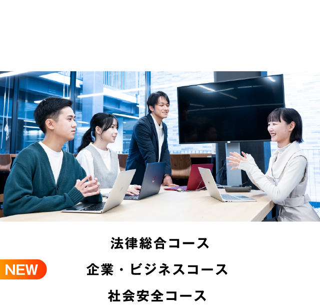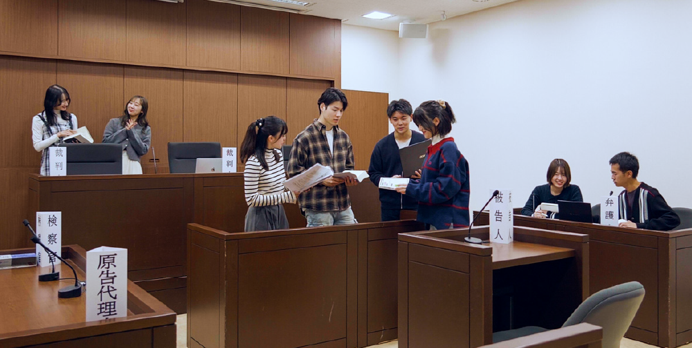豊富なプログラムで確実にスキルを磨き、実践的な模擬裁判や企業連携など、法的思考力を身に付ける、そんなアクティブな法学部でキミの未来を構築しよう。
