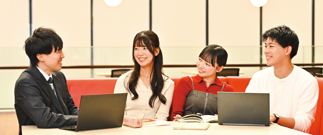 文部科学省に最優秀賞と認められたキャリア実習をはじめ、入学直後から卒業まで多彩なキャリア形成支援プログラムを展開。低年次から自分のキャリアを描く機会を設け、社会で生き抜く力を育てます。就職活動では、約40人の専任スタッフが年間約12,000回の個別面談を実施するなど、きめ細かにサポート。こうして培われる資質や能力は、卒業生が就職した企業や社会からも高く評価されています。