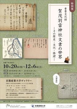 京都産業大学ギャラリーでは、2025年10月20日(月)から12月6日(土)まで、京都産業大学創立60周年記念・京都産業大学ギャラリー特別展「重要文化財 賀茂別雷神社文書の世界―その世界・文化・修理―」を開催します。