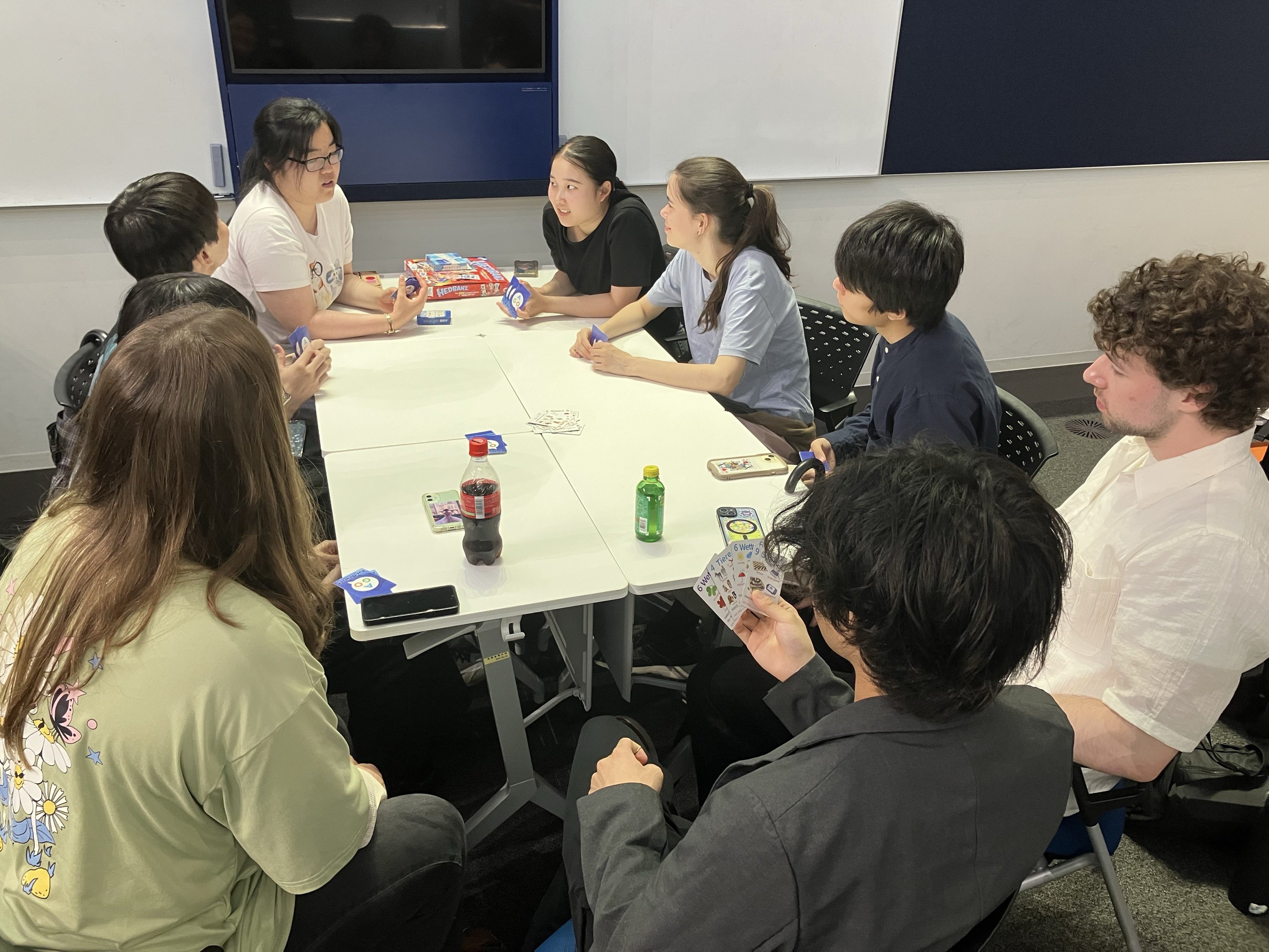 イベントでは、LINKが手作りした会話トピックカードや、簡単なカードゲームなども使って、趣味や旅行など身近な事柄を中心に会話をしました。交換留学生と本学学生が、互いにドイツ語と日本語を教え合う姿も見られました。