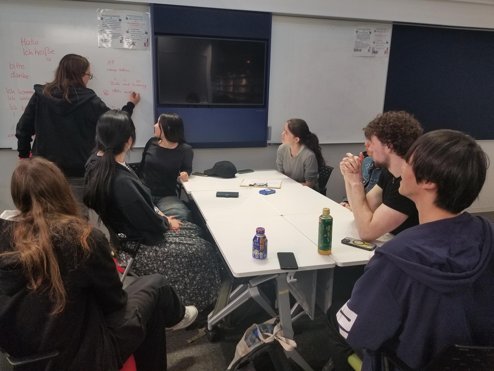 2025年春学期授業期間中、毎週月曜日12:20~13:00に、グローバルコモンズにて、ドイツ語会話イベント「ドイツ語で話そう!」を開催しました。学生ボランティアスタッフ「LINK」の企画・運営する本イベントは、ドイツ語やドイツ文化に関心を持つ学生が気軽にドイツ語で交流できる場を提供することを目的としています。