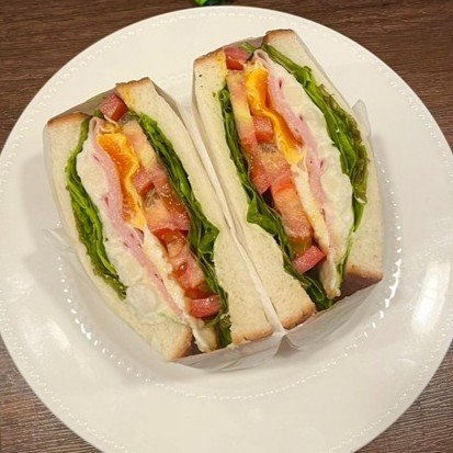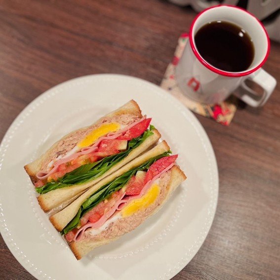 - ツナ&ハムサンドは、ツナの旨みと卵のまろやかさが絶妙にマッチ。レタスのフレッシュさが全体を引き締め、朝から元気が出る一品です。