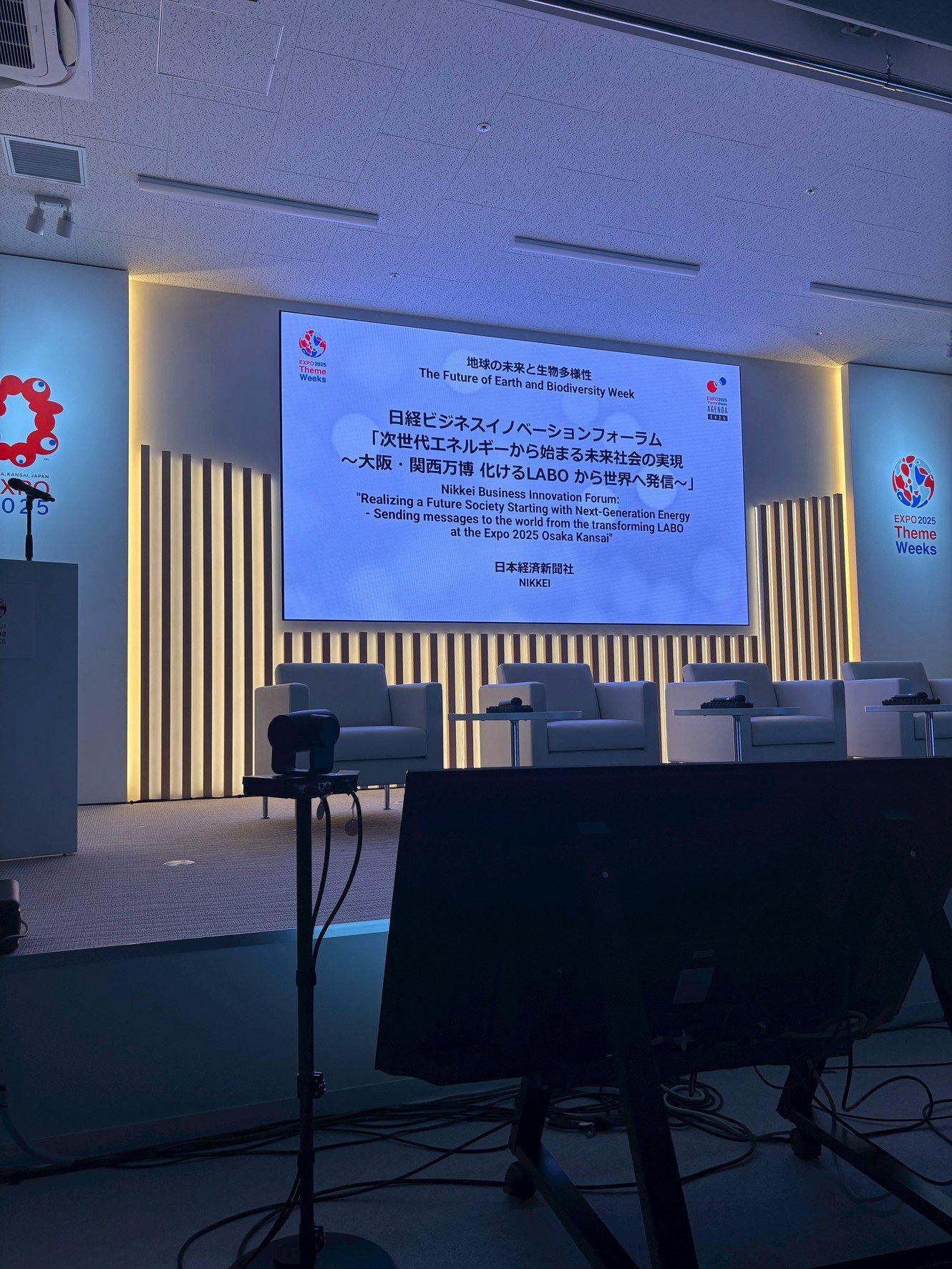 大阪・関西万博の「地球の未来と生物多様性ウィーク」期間中である2025年9月22日(月)に、万博内のテーマウィークスタジオで開催された、日経ビジネスイノベーションフォーラム「次世代エネルギーから始まる未来社会の実現 ~大阪・関西万博 化けるLABO から世界へ発信~」のトークセッションへ、本学経済学部4年次生である若月 拓海さん(経済学部 菅原ゼミ所属)が登壇されました。