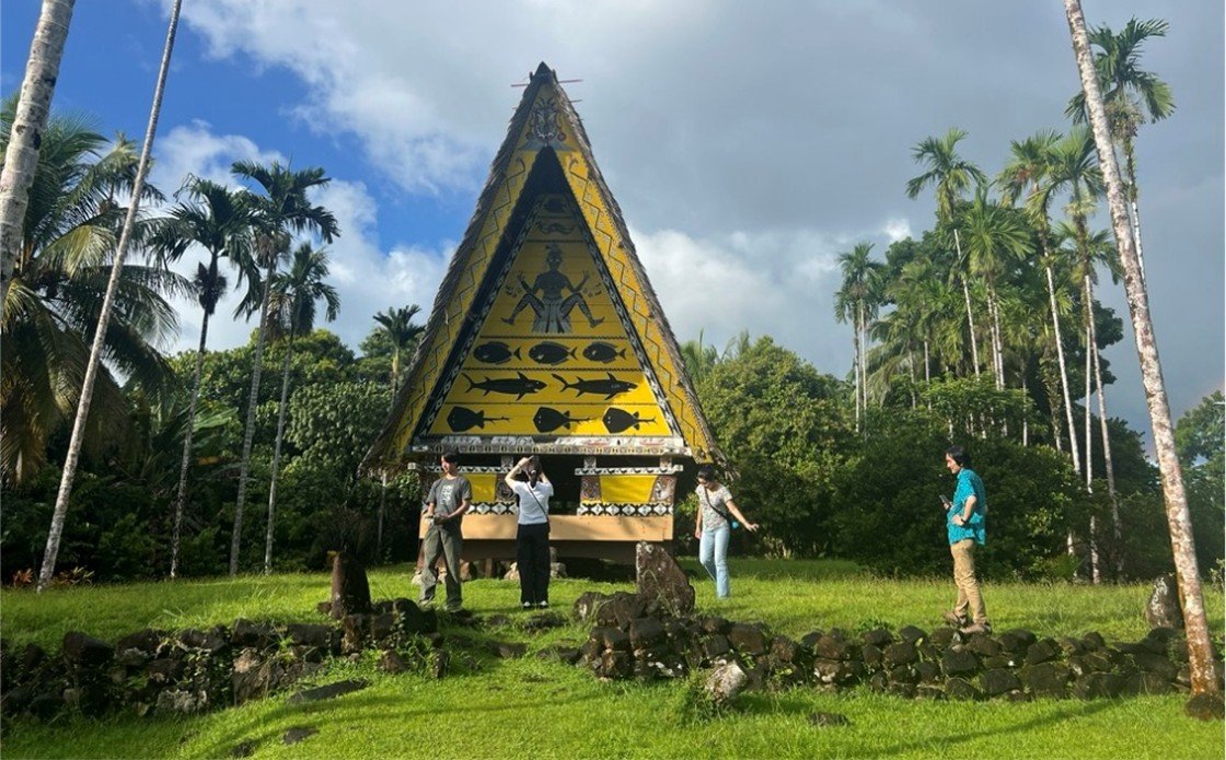 観光実習では、日系旅行会社が催行するツアーに参加し、観光客としてパラオを訪れた場合にどのような体験が得られるのかを実地で理解を深めることができました。ガイドによる案内の仕方や安全管理、環境への配慮、観光客を楽しませる工夫などを観察し、観光業におけるホスピタリティとサステナビリティの両立について考える機会となりました。特に、サンゴ礁や島々の景観が持つ観光資源としての価値を実感し、現場での体験を通じてパラオの観光の魅力を多面的に理解することができました。実習後には、学生たちがツアーの運営や内容について現地ツアーオペレーターに対してフィードバックを行いました。観光客の視点から見た改善点や提案を共有することで、実践的な学びを現地社会に還元する機会ともなりました。