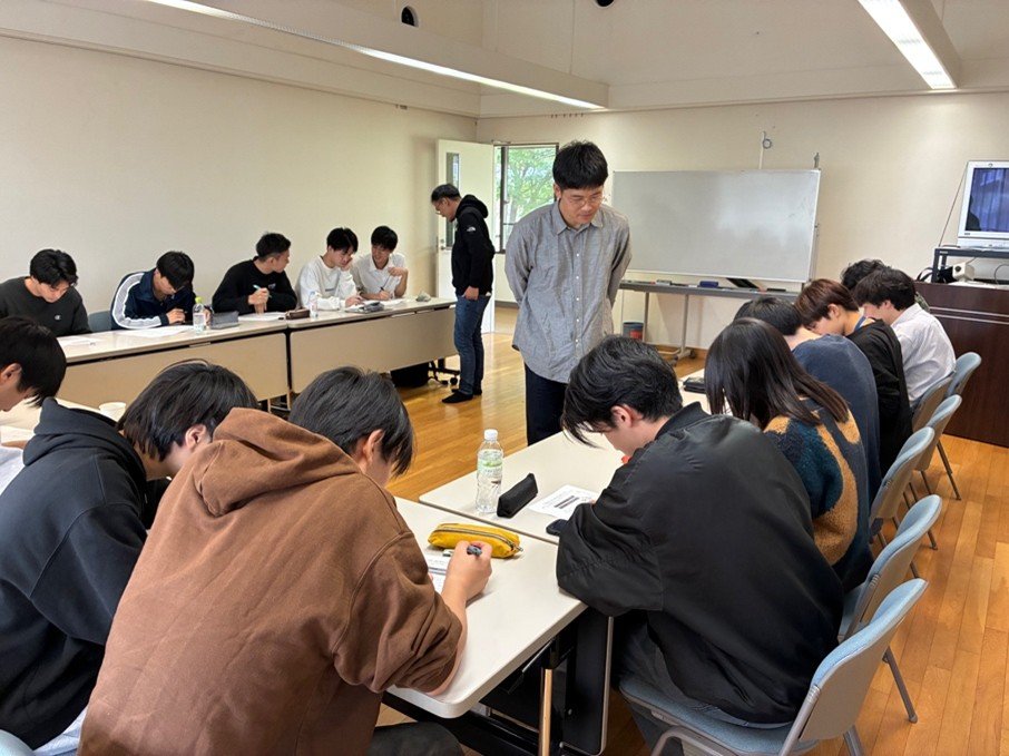 1日目には、数理科学科が設置している「BizMathコース」の趣旨や修了要件に関する紹介を行いました。さらに、近年就活市場において評価の対象となりつつある統計検定2級の過去問題を題材に、確率論や数理統計に関わる問題演習を行いました。
