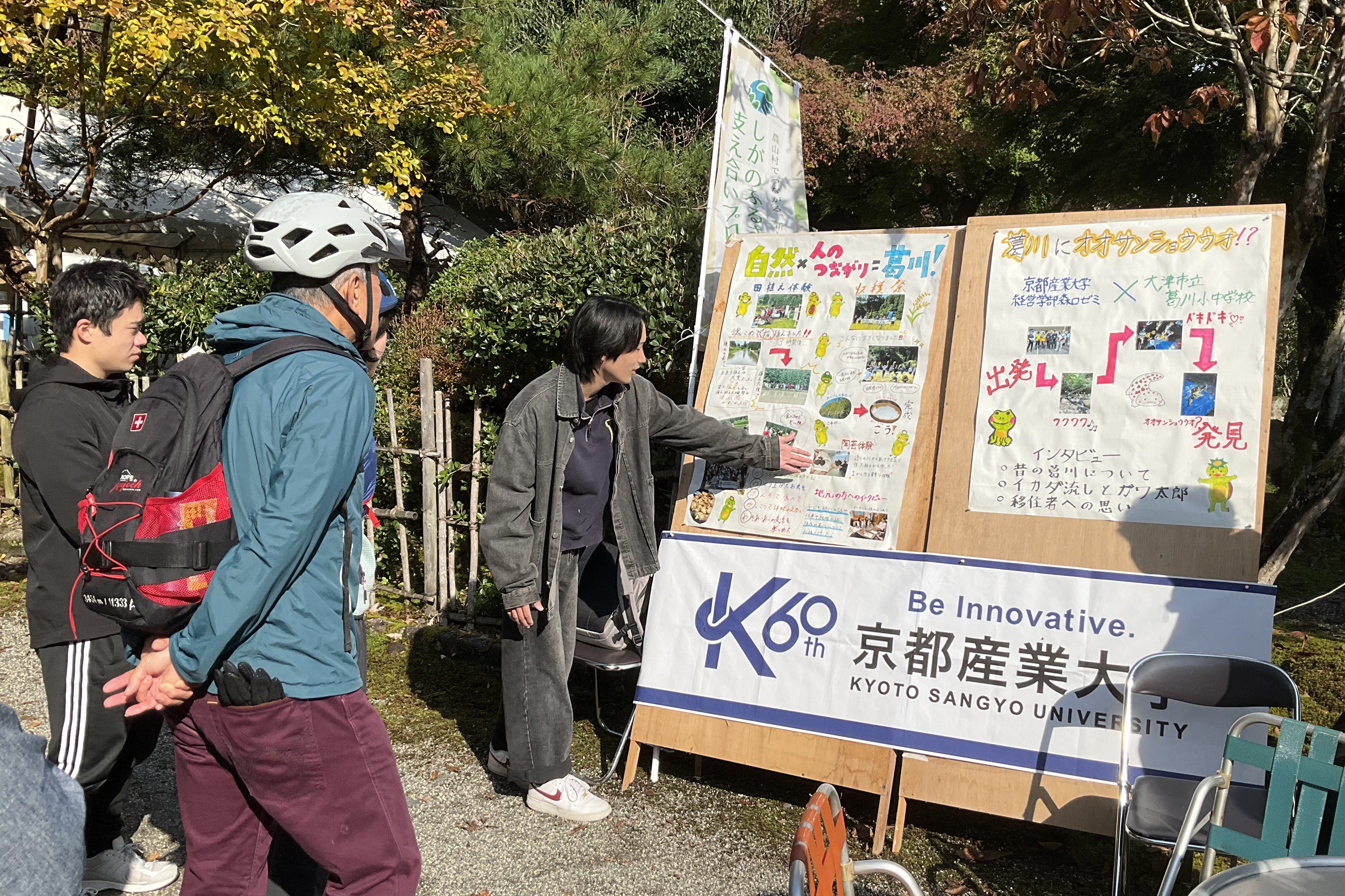 葛川文化祭の会場では、来場者に向けて学生が活動内容を丁寧に説明し、意見交換を行いました。発表は特に地域の方々から高い関心を集め、学生にとっても貴重なフィードバックの機会となりました。