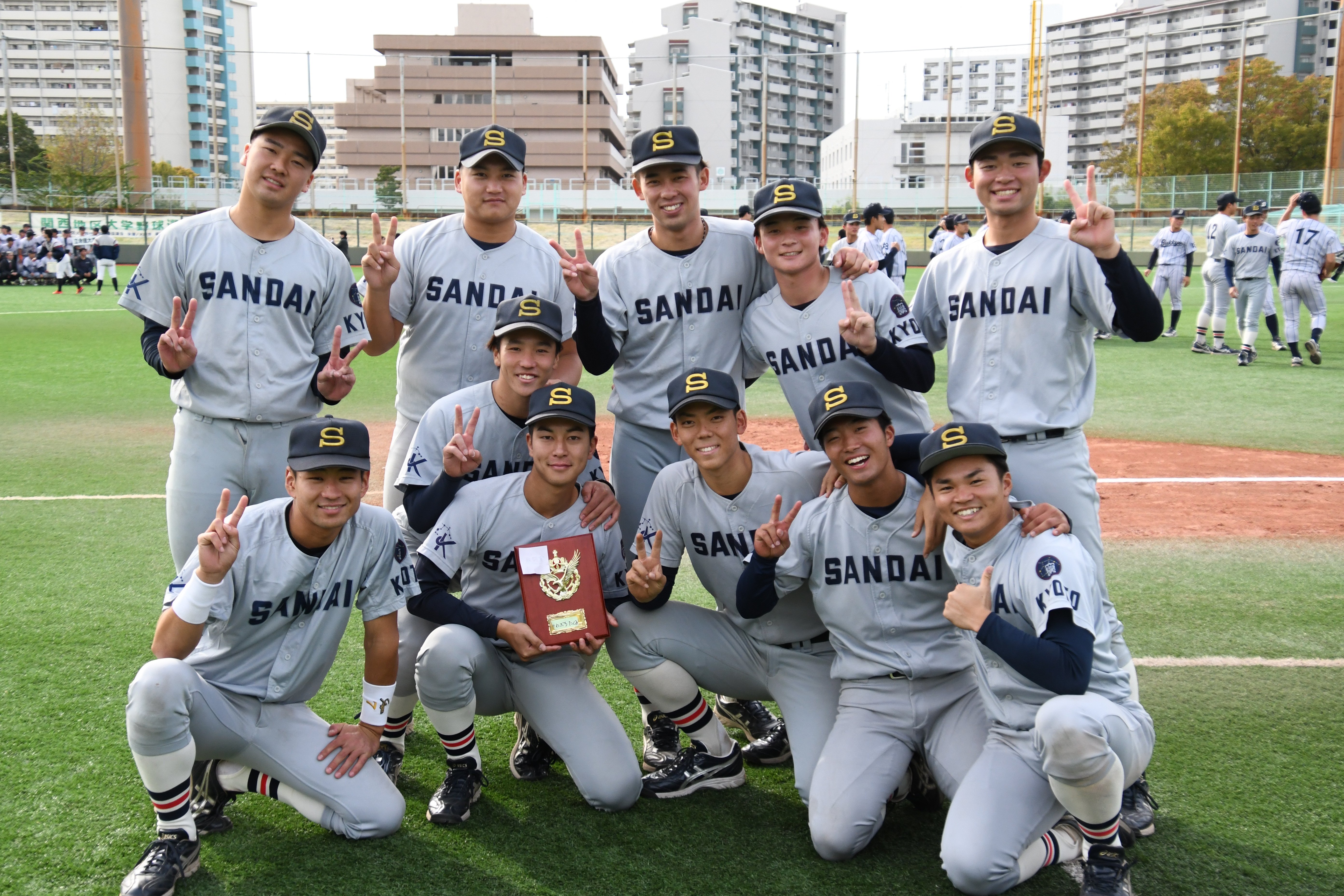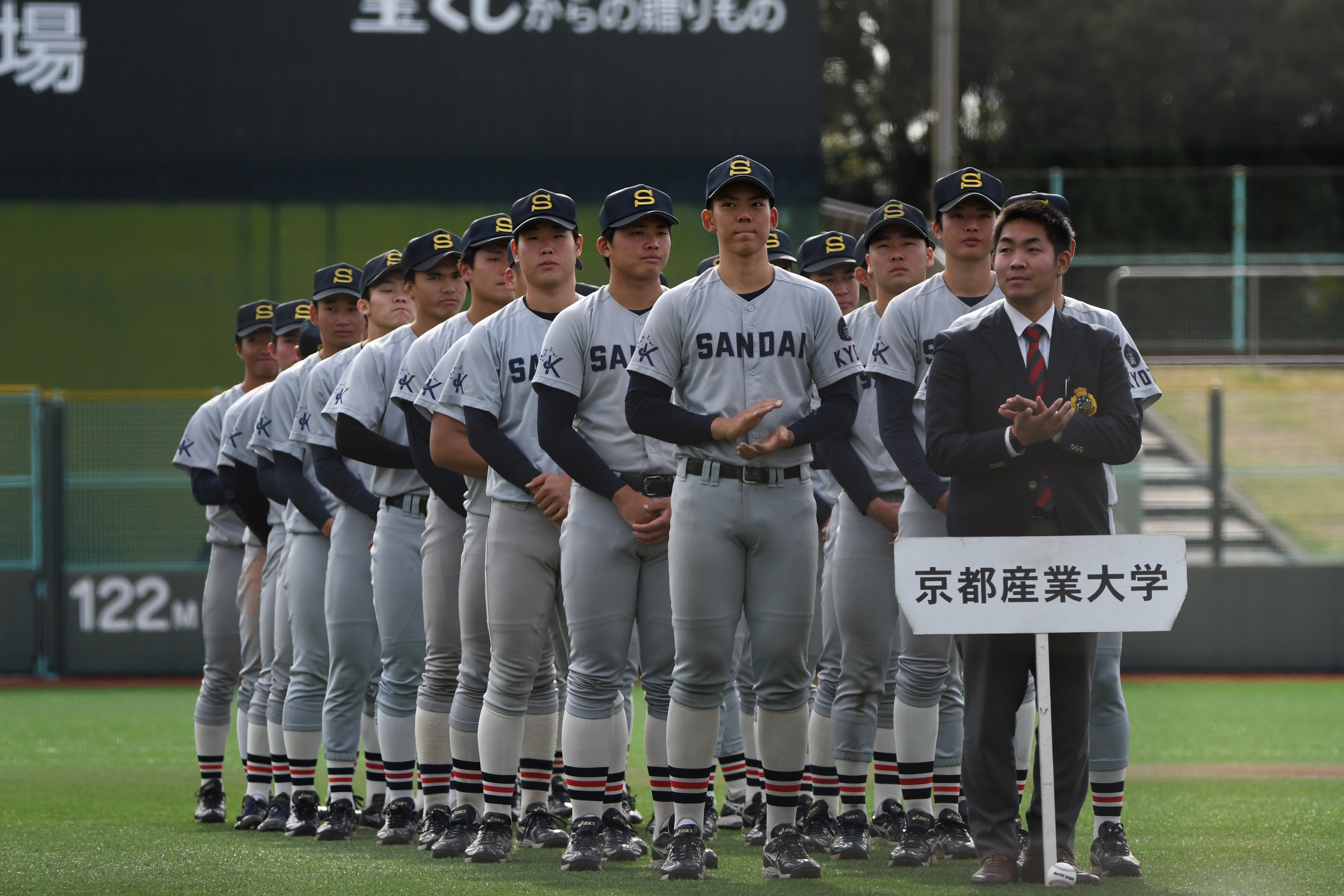 本学は7年ぶりに関西六大学野球秋季リーグ戦を制し、関西六大学野球連盟の代表として今大会に出場。11月1日から4日まで大阪市・南港GOSANDO野球場で開催された本大会には、関西地区5連盟の優勝校が集い、明治神宮野球大会出場を懸けて熱戦が繰り広げられました。