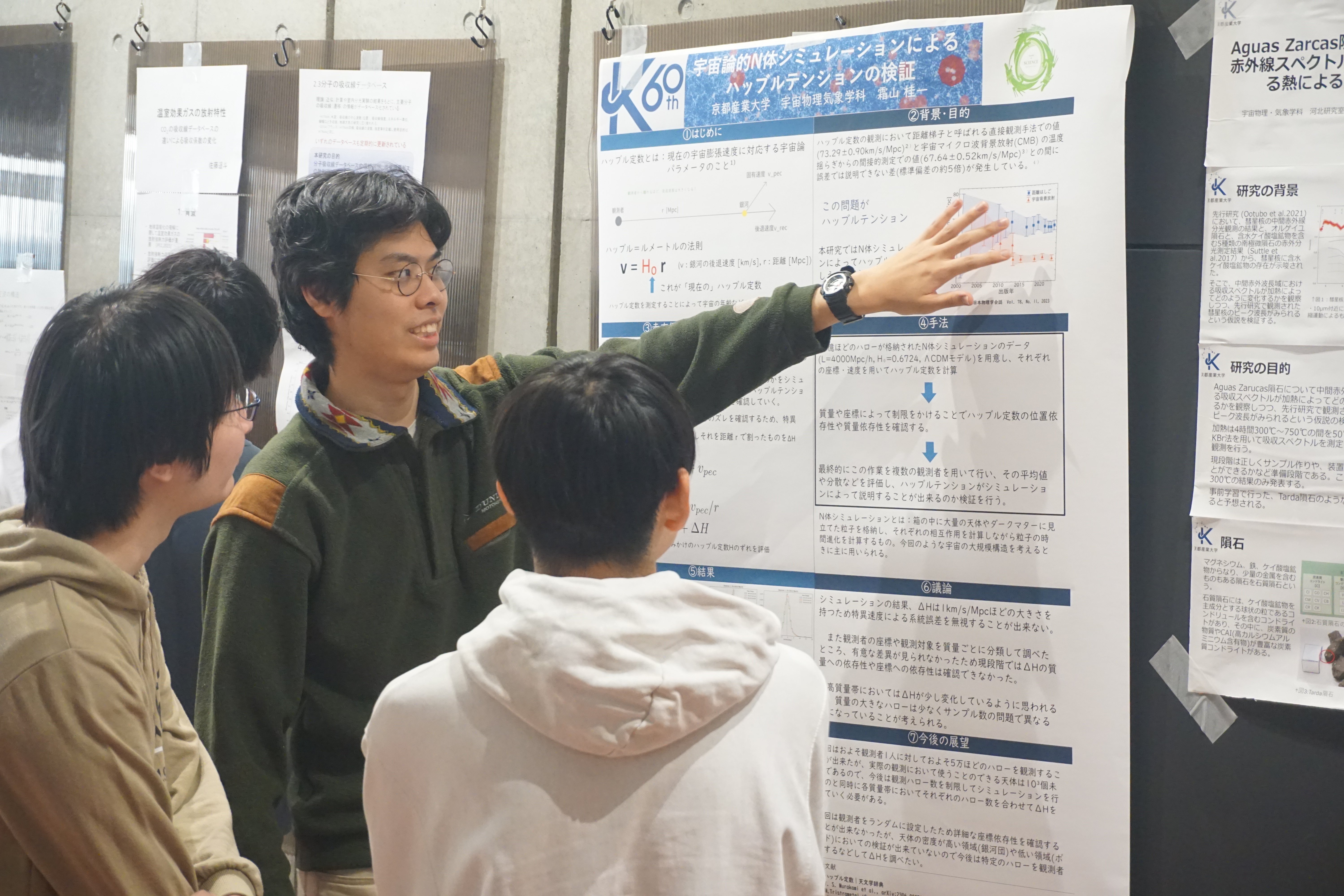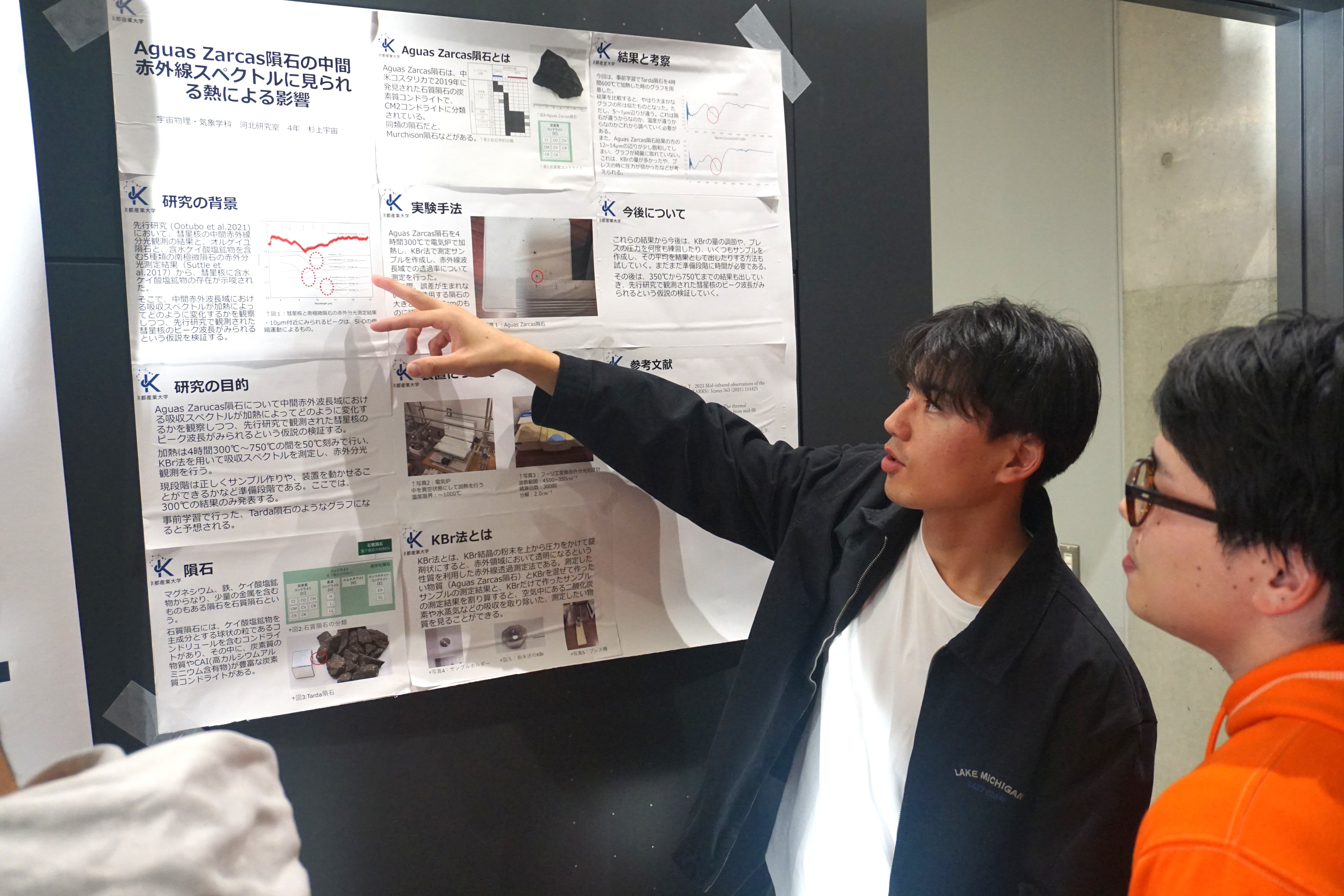 2025年11月12日(水)13:15から16:30まで、天地館2階ロビーにて、理学部宇宙物理・気象学科の4年次生による特別研究の中間発表会を開催しました。