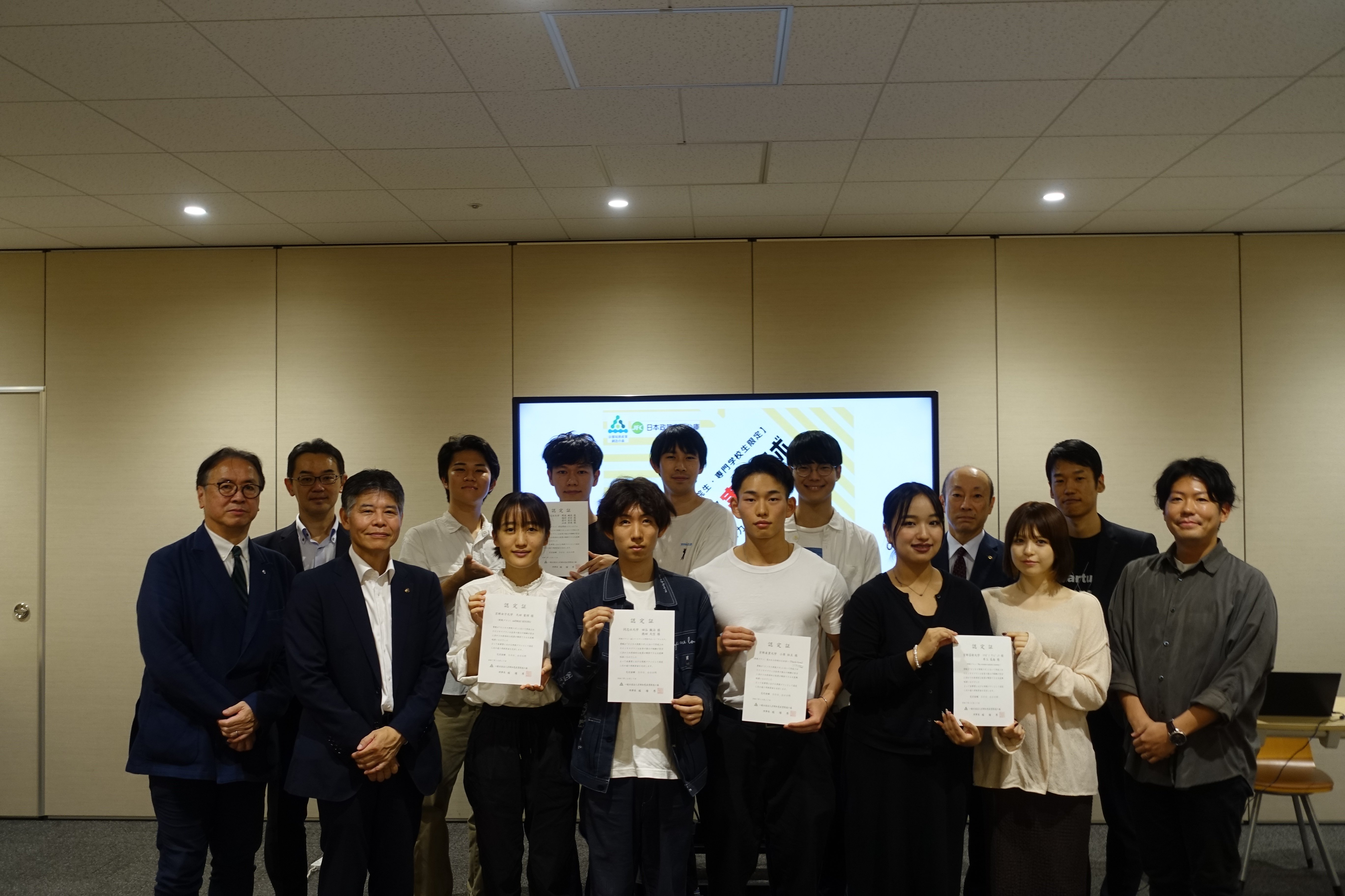 採択された5組の学生たちと記念撮影(前列右から4人目が小原さん)