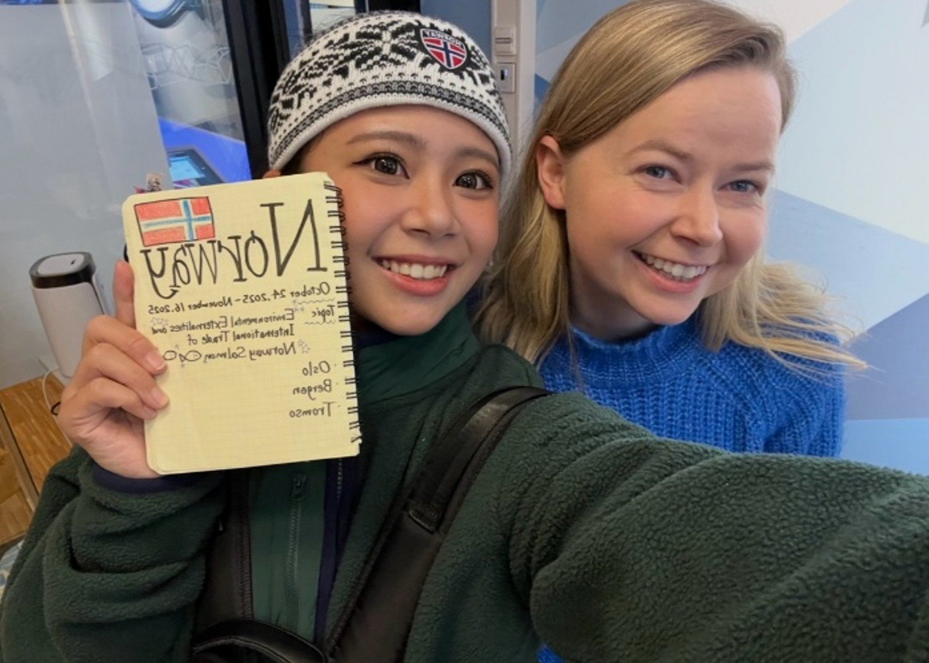 現在、私は「一枝会行ってみ!チャレンジ」を通して、国際貿易と環境問題の関係性をテーマに実践的に理解することに力を入れています。2025年10月から11月の間に一枝会支援金を利用してノルウェーへ渡航しました。そして「ノルウェーサーモンの環境外部性と国際貿易」を調査するために企業訪問や養殖場見学、インタビュー調査を行いました。私はお寿司で人気なサーモンに焦点を当てて、サーモンが抱える国際問題の複雑さに興味を持ちました。ノルウェーでは特有の自然環境であるフィヨルドを効果的に利用し、政府の厳格な管理体制のもとで企業と連携し、海洋環境保全の取り組みを実施していました。こうした政府の支援と厳しい環境政策がノルウェーが誇るサーモンの輸出量を維持できる要素となっていました。事前勉強してから渡航しましたが、やはり細かい環境政策など現地へ足を運ばないと知ることができなかったことはとても多かったです。自分の目で見て、考えることの重要性を実感しました。