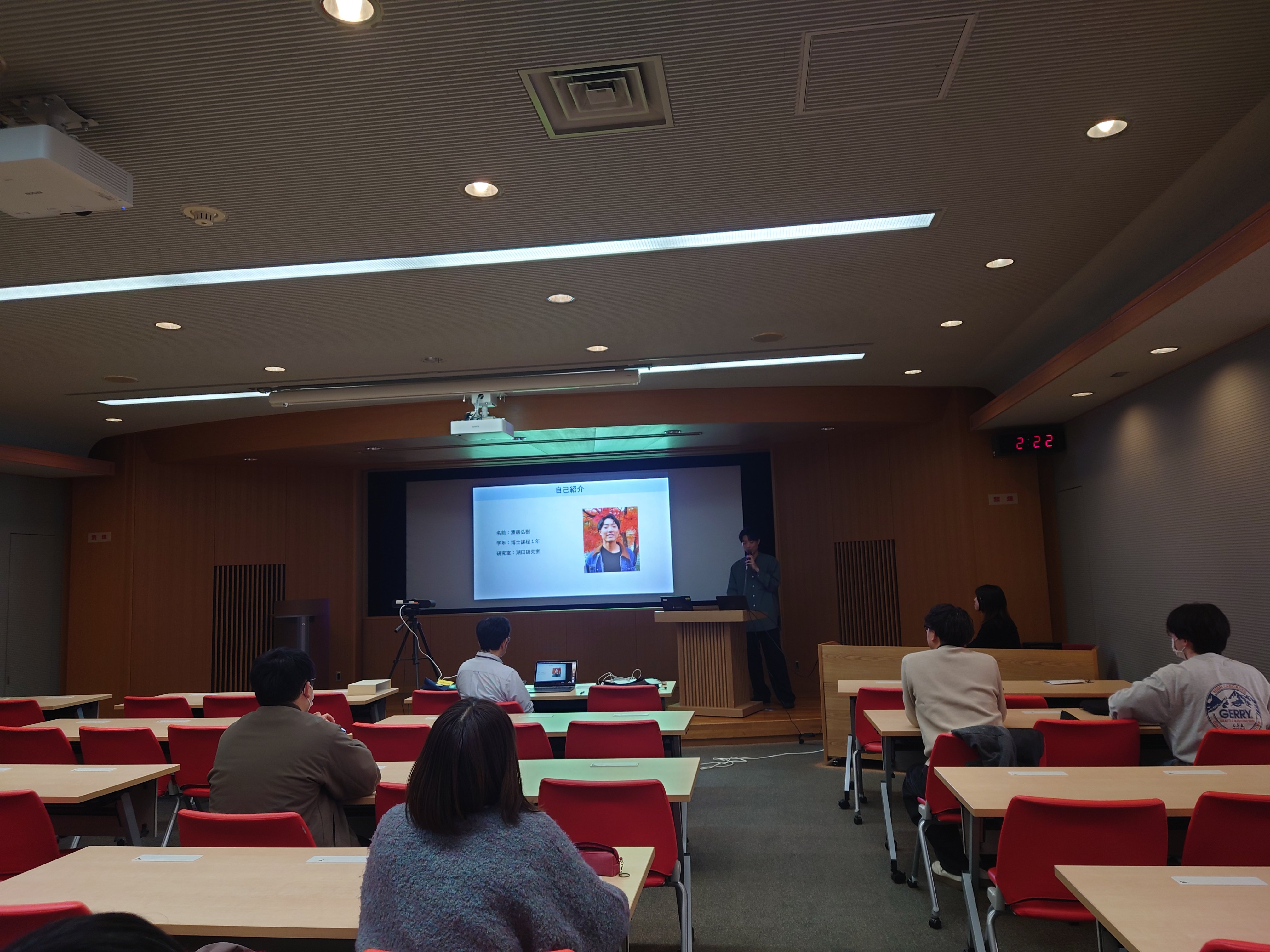 始めに、副研究科⻑の板野 直樹教授よりご挨拶をいただいた後、進路・就職⽀援センターの岩本 駿吾さんによる「進路ガイダンス」を⾏いました。その後、中村 暢宏教授による「募集要項説明」、⼤学院⽣4名による院進学を決めた理由等の「大学院生談話」がありました。