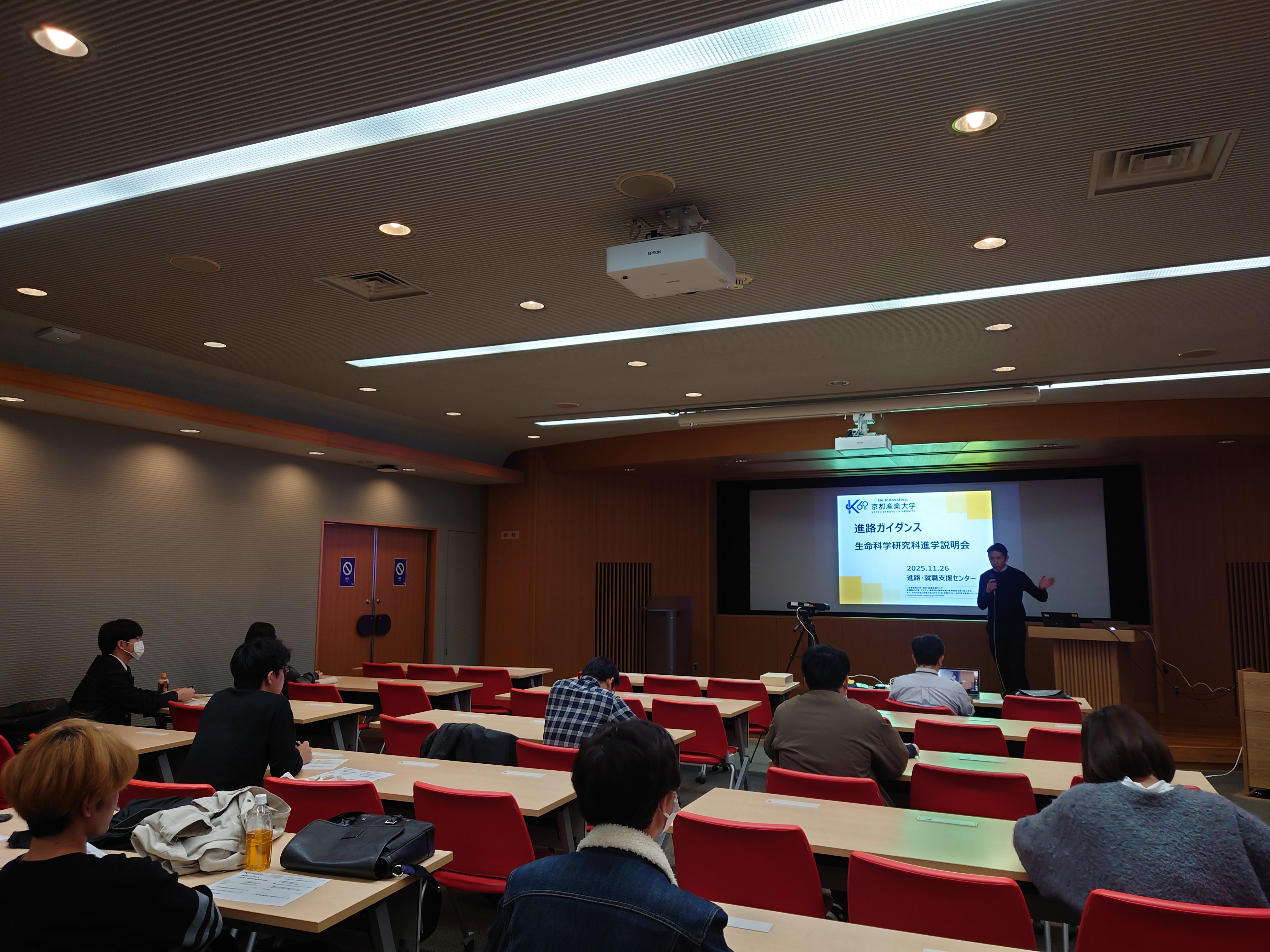 説明会には、⽣命科学部⽣の26⼈が参加しました。