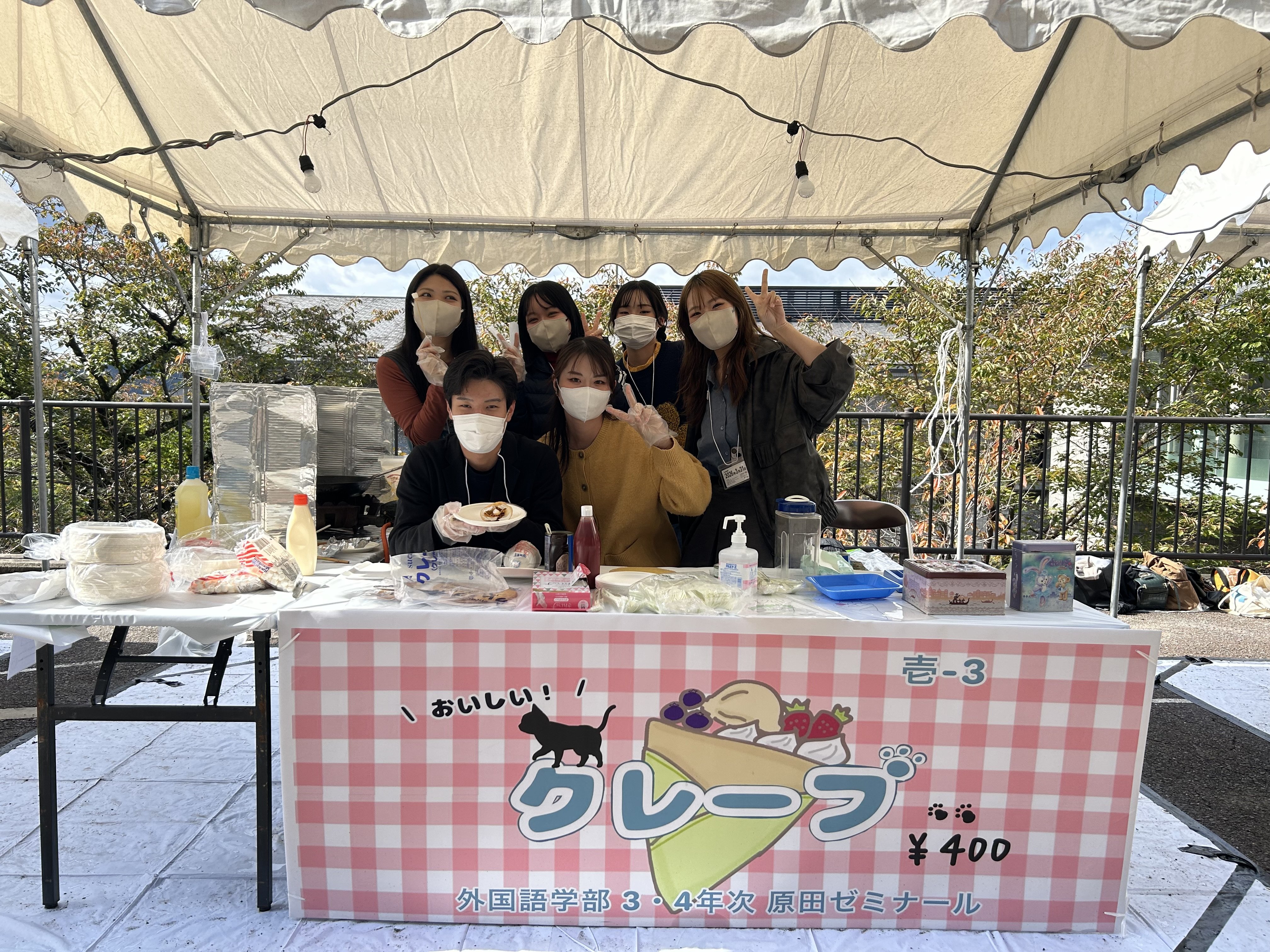 11月1日〜11月3日に開催された第60回神山祭で、英語学科の小柴ゼミと原田ゼミの学生が、それぞれ「たません」と「クレープ」の模擬店を出店しました。