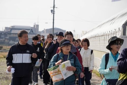 京都産業大学現代社会学部 鈴木ゼミ7期生(3年次生)が、11月2日に久御山町が開催した「野菜とクイズと歴史ツアー」で、ゼミ生が制作した「くみやま野菜 直売所 ガイドブック」の説明を行いました。本イベントは、久御山町の「歩くまち宣言」4周年を記念したものです。“くみやま野菜“のPRも兼ねて同町内に点在する農産物直売所巡りと、中央公園で開催の「くみやま まちのがっこう2025」での遊び・グルメ・ショップコーナー、町役場では「第50回久御山町民文化祭」が併催され、町内はとても賑やかな様子でした。