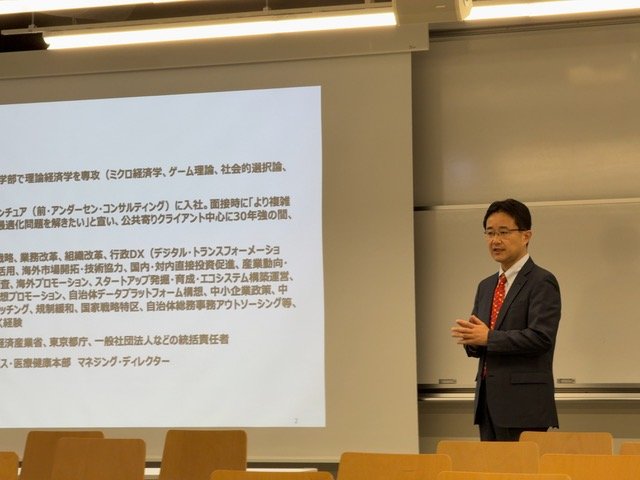 12月3日の授業では、アクセンチュア株式会社 公共サービス・医療健康本部の榎原 洋マネジング・ディレクターをお招きして、「コンサルタントの公共政策への関わり」をテーマにご講演いただきました。