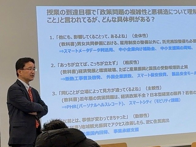 法学部の専門教育科目「政策分析論」(担当:北川 雅敏 教授)では、公共政策における分析の必要性からその手法までを全15回で講義しています。