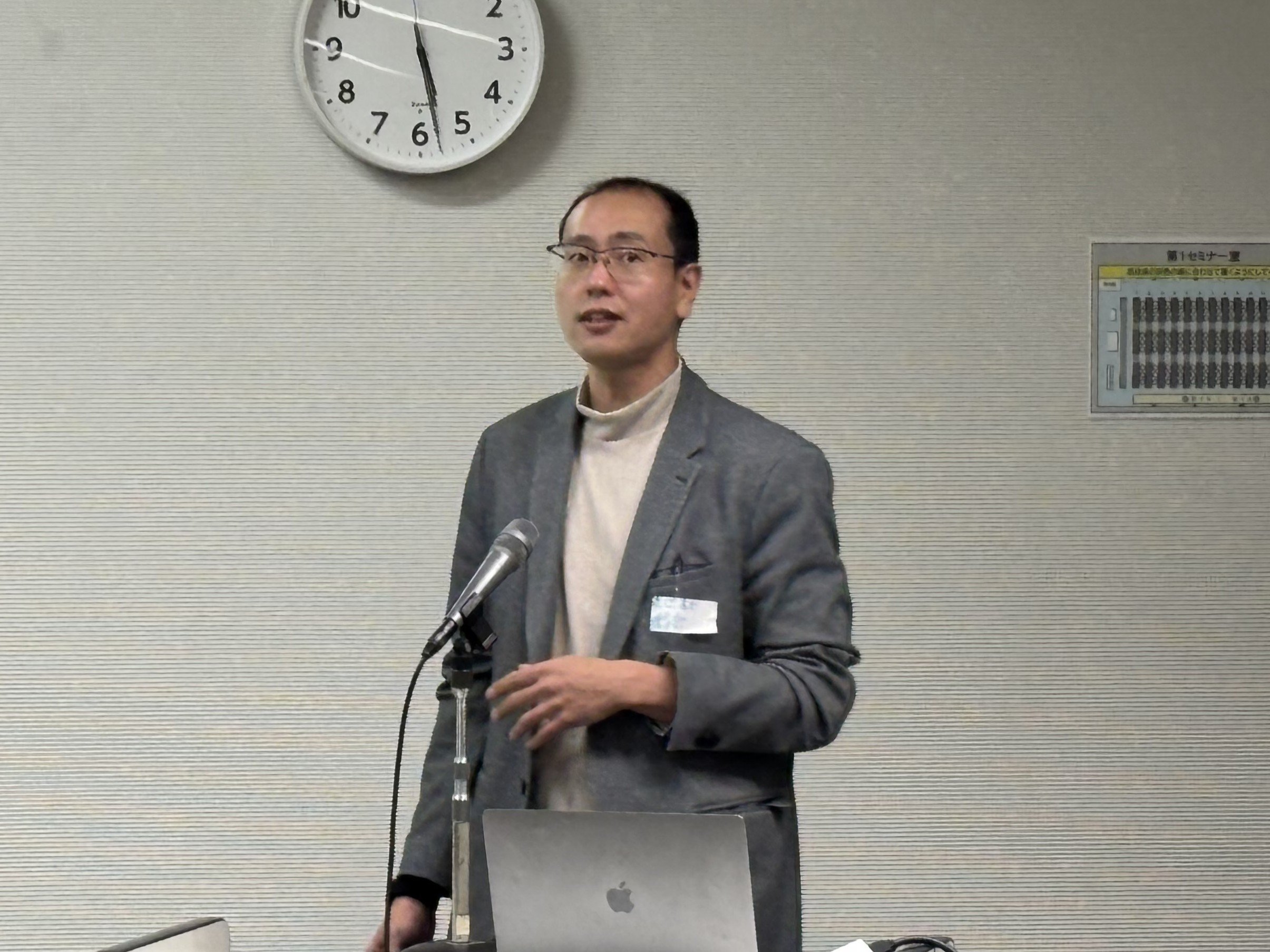 三田教授からは、必修の英語科目や講義・演習で「+オンデマンド等」を科目に応じて多様な形式で活用している事例が紹介されました。1年次では自己学習計画や英語レポート、プレゼンの基礎を扱う全クラス共通動画を作成し、2年次演習ではアカデミックライティングの基礎を共通動画として提供しています。講義科目では事例導入や分析手法解説をテーマ別の動画(計90分)に整理し、学年共通英語科目では全クラス合同のプレゼンコンテストを実施し、アウトプットに集中する形式であることが報告されました。また、学期進行中の動画作成負担や公開時期の調整、シラバスとの整合といった運用上の課題の指摘もありました。