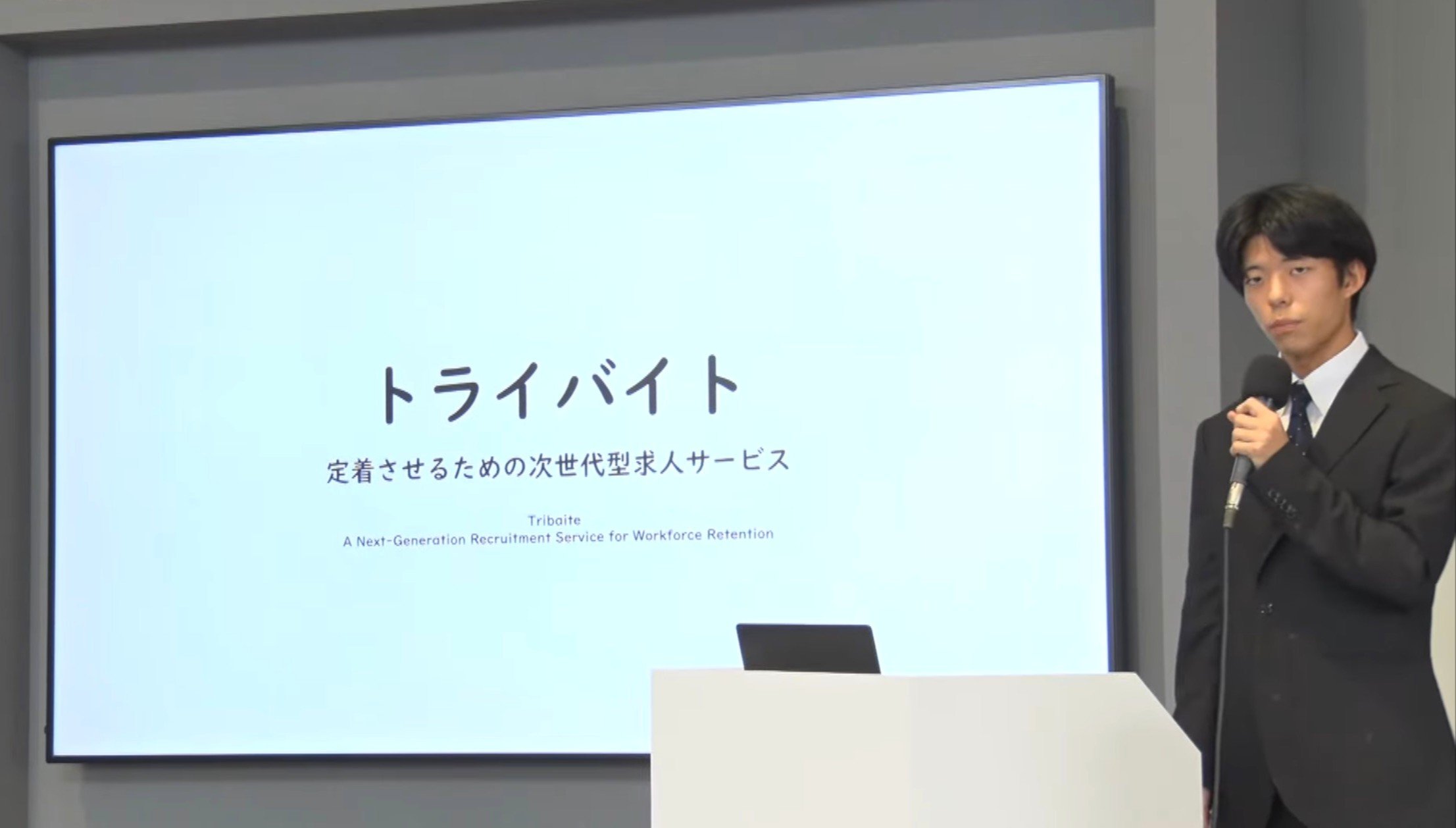 アルバイトの次世代型求人サービス「トライバイト」をプランとして発表し、社会課題や雇用構造の歪みやから生まれる「求人票と実務のギャップ」をアルバイト雇用の段階からどのように解消できるかを考えました。このサービスは、採用前に「1週間の有給お試し勤務」を設けることで、学生は仕事内容や職場環境を体験でき、企業も適性を確認したうえで採用判断が可能となります。
