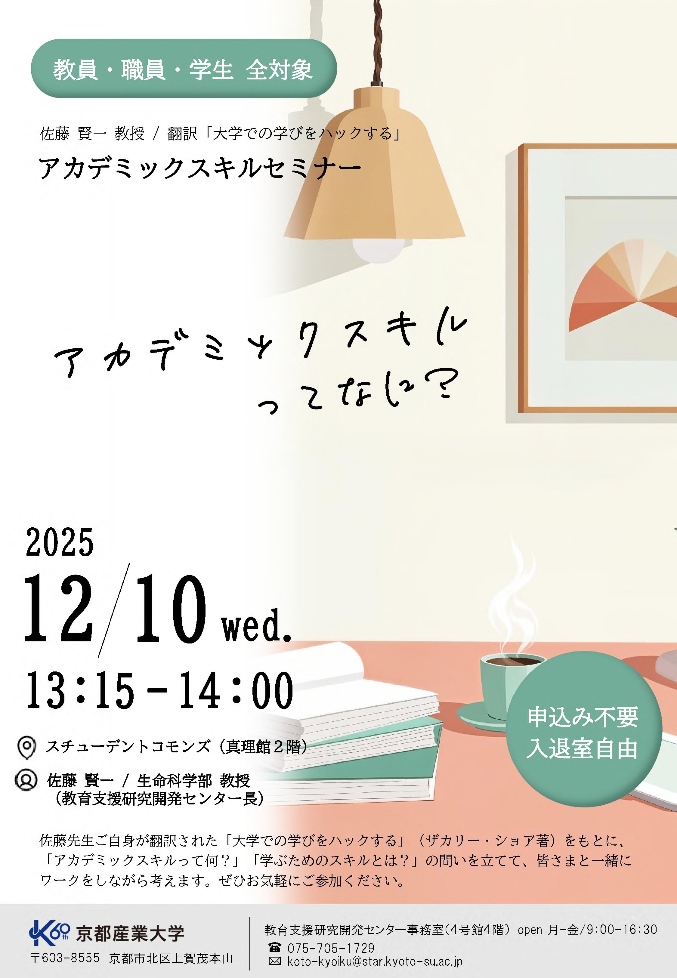 2025(令和7)年12月10日(水)に教職員および学生を対象としたアカデミックスキルセミナー「アカデミックスキルって何?」をスチューデントコモンズで開催しました。