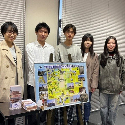 マップの製作を中心となって担当した産業生命科学科3年次生の坂野 舞子さんは「マップ作製は難しく、手探りでの作業でしたが、平城宮跡歴史公園の魅力を多くの方に伝えたいという思いで取り組みました。手に取っていただけるか不安もありましたが、想像以上に多くの方に利用していただくことができ、とても嬉しく、貴重な経験になりました。このような機会をいただいた平城宮跡歴史公園の皆様に感謝しています。」と述べました。