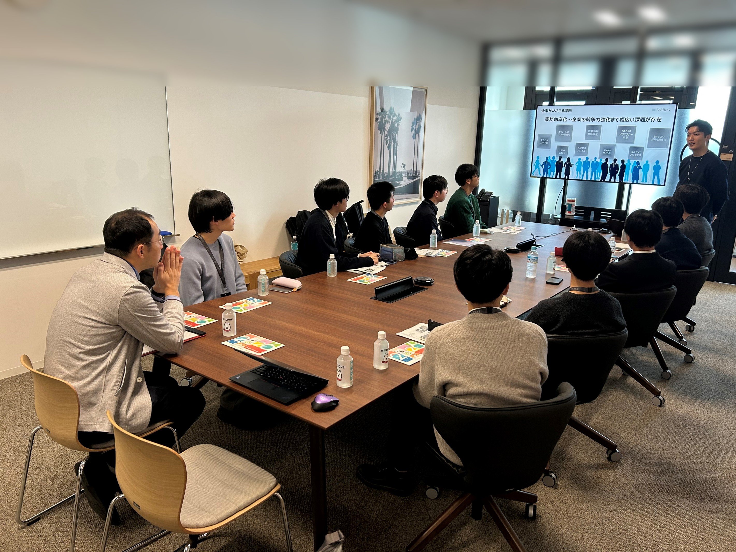 当日は、社員の方々からAI需要予測サービス「サキミル」の仕組みや、飲食・小売業の抱える課題に対する解決策について説明を受けました。また、位置情報を用いて人流統計データを取得する技術や位置情報におけるプライバシー保護の重要性について詳しく学び、現代におけるAIの活用方法や情報技術の持つ可能性への理解を深めました。私たち学生からの質問に対しても、エンジニアの方々に気さくに回答していただき、活発な議論を行っていただきました。
