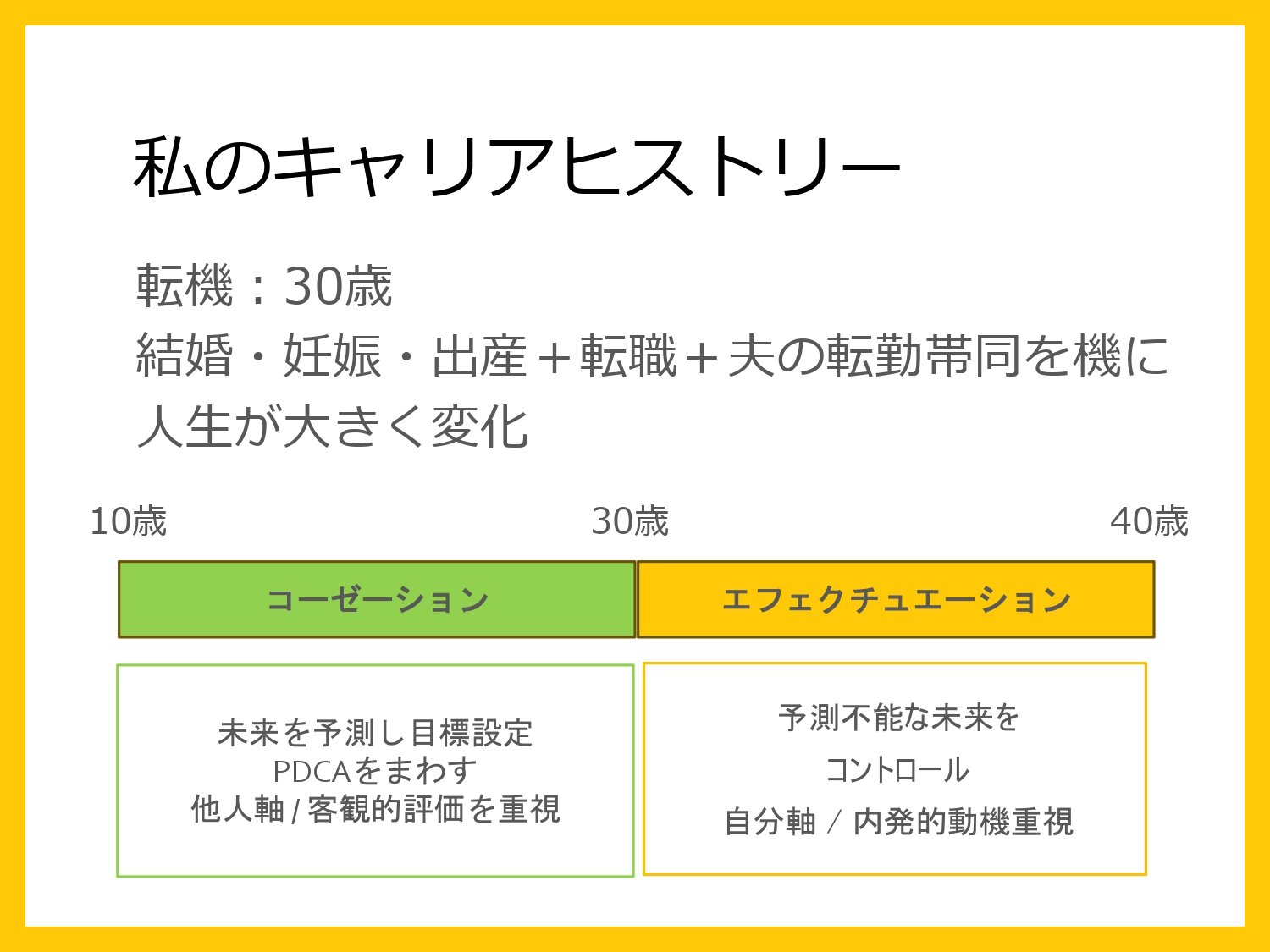 - 母親でありながら、自分が解決したい社会問題にも取り組んでおられ、経歴も多彩で、直面した壁も大変大きい。だからこそ「エフェクチュエーション」の考え方を大事にしていることが分かりました。