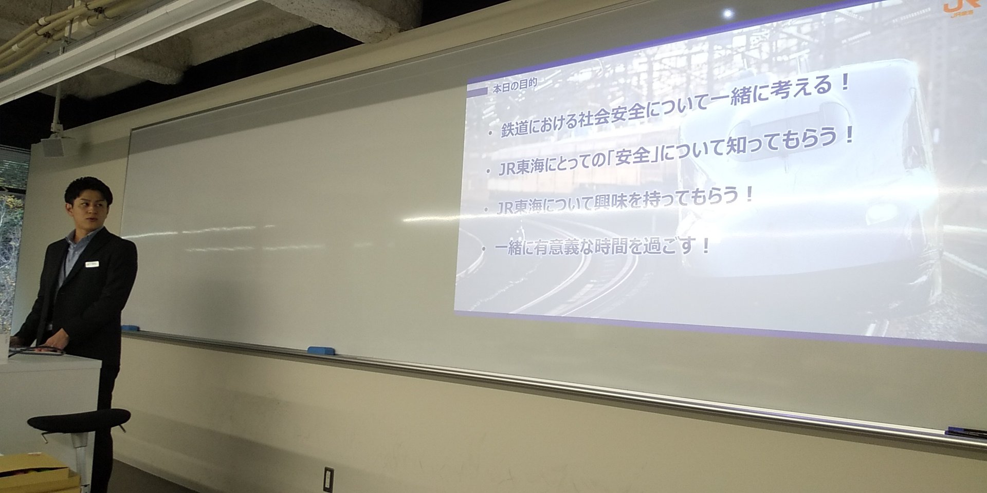 さる12月8日に「安心・安全な社会」の実現を目的とする社会安全学を考える浦中ゼミで、「鉄道における社会安全」をテーマに、鉄道が抱える社会安全的リスクとその対策について、東海旅客鉄道株式会社(以下JR東海)技術企画部の担当者から説明いただきました。