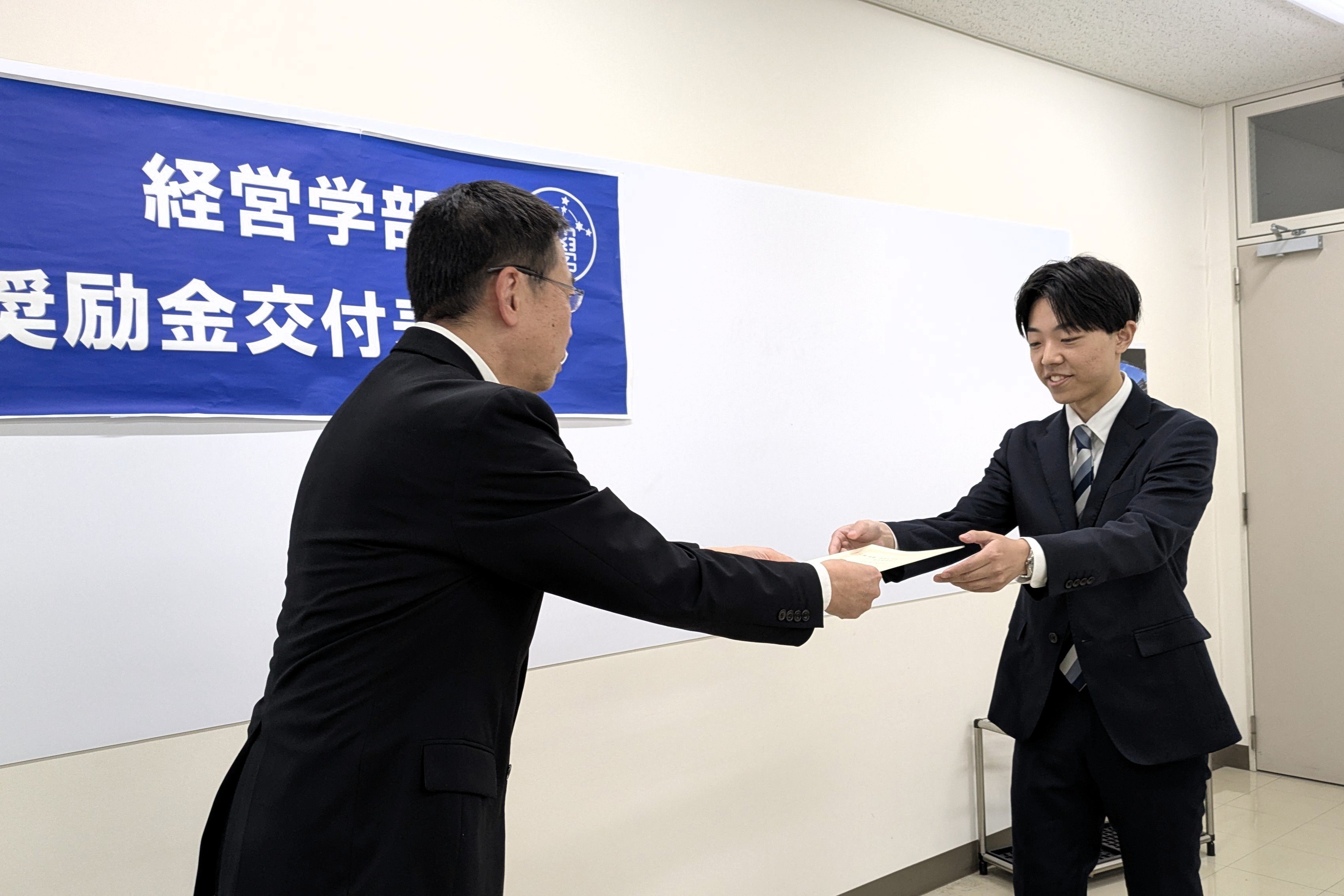 経営学部では学業成績が特に優秀な者や奨励する資格等取得者に対して、その努力と成果を表彰し、奨励金を授与しています。